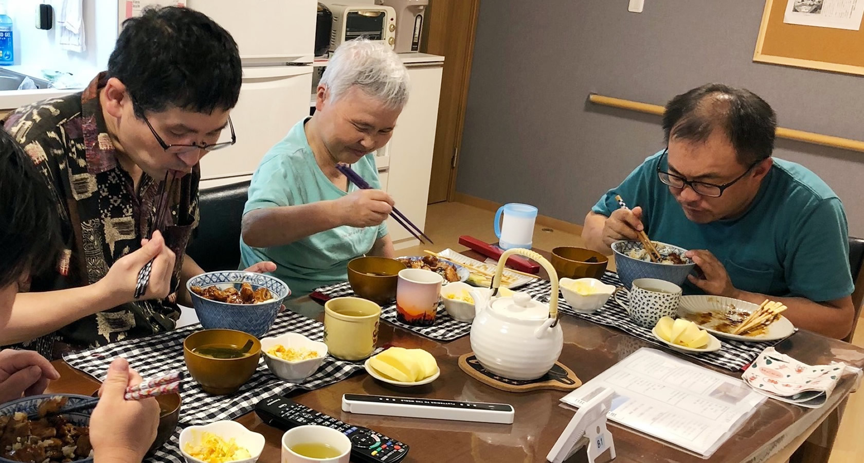 BREMEN中里では、利用者様が地域において自立した日常生活、または社会生活を営むことができるよう、共同生活住居において支援を行っています。健康管理、家事支援、食事提供(朝夕のみ)、生活全般上の相談、必用に応じて金銭管理、日中活動先との連携などの支援を行っています。